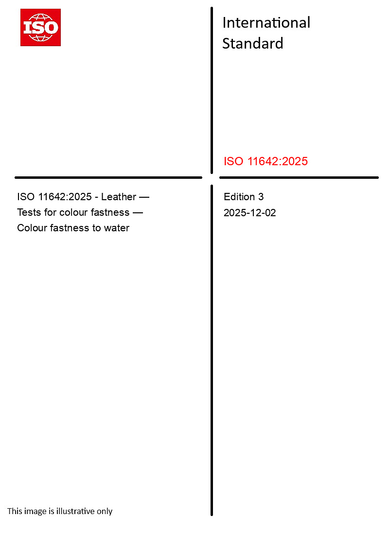 ISO 11642:2025 - Leather — Tests for colour fastness — Colour fastness to water