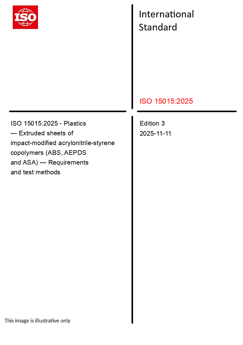 ISO 15015:2025 - Plastics — Extruded sheets of impact-modified acrylonitrile-styrene copolymers (ABS, AEPDS and ASA) — Requirements and test methods