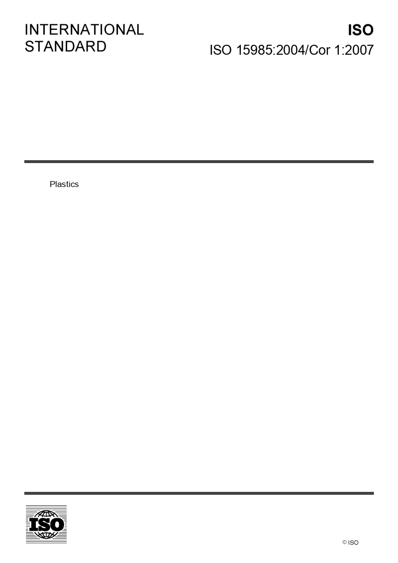 ISO 15985:2004/Cor 1:2007-Plastics-Determination of the ultimate anaerobic biodegradation and disintegration under high-solids anaerobic-digestion conditions-Method by analysis of released biogas