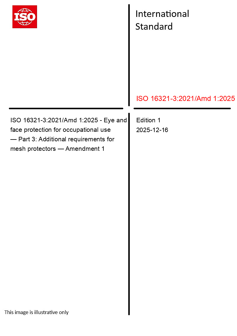 ISO 16321-3:2021/Amd 1:2025 - Eye and face protection for occupational use — Part 3: Additional requirements for mesh protectors — Amendment 1