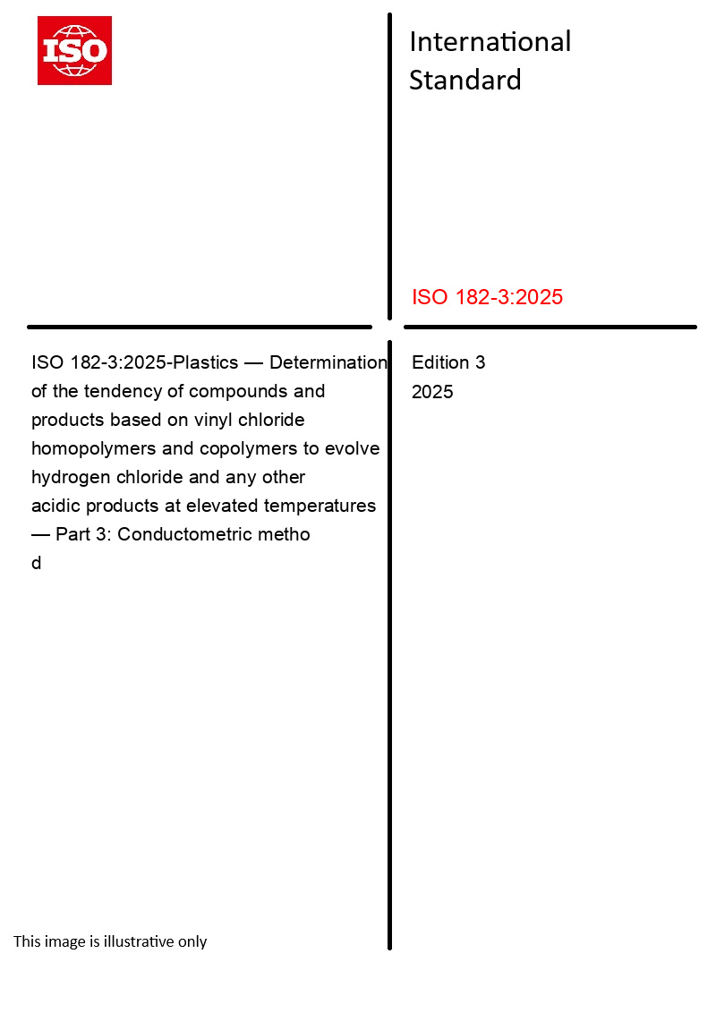 ISO 182-3:2025-Plastics — Determination of the tendency of compounds and products based on vinyl chloride homopolymers and copolymers to evolve hydrogen chloride and any other acidic products at elevated temperatures — Part 3: Conductometric method