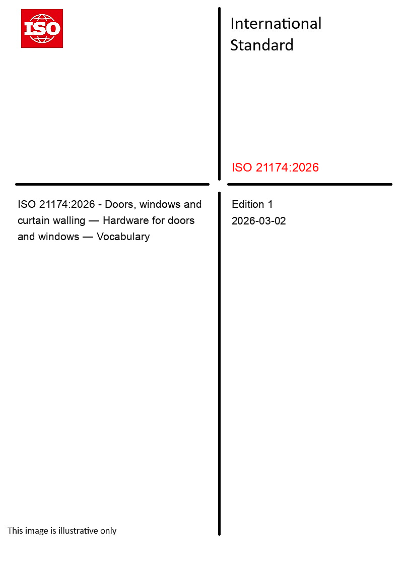 ISO 21174:2026 - Doors, windows and curtain walling — Hardware for doors and windows — Vocabulary