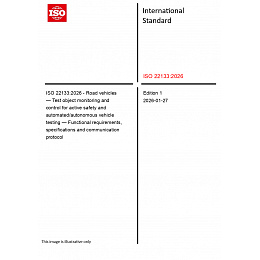 ISO 22133:2026 - Road vehicles — Test object monitoring and control for active safety and automated/autonomous vehicle testing — Functional requirements, specifications and communication protocol