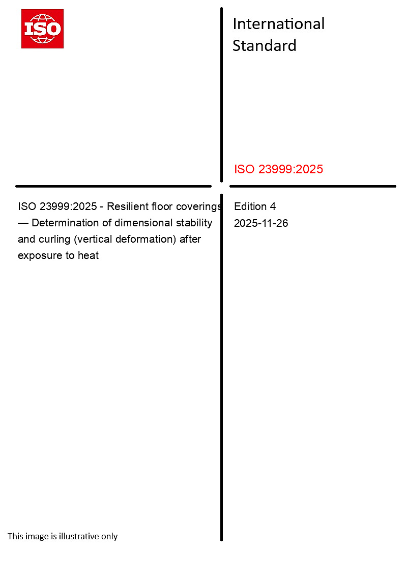 ISO 23999:2025 - Resilient floor coverings — Determination of dimensional stability and curling (vertical deformation) after exposure to heat