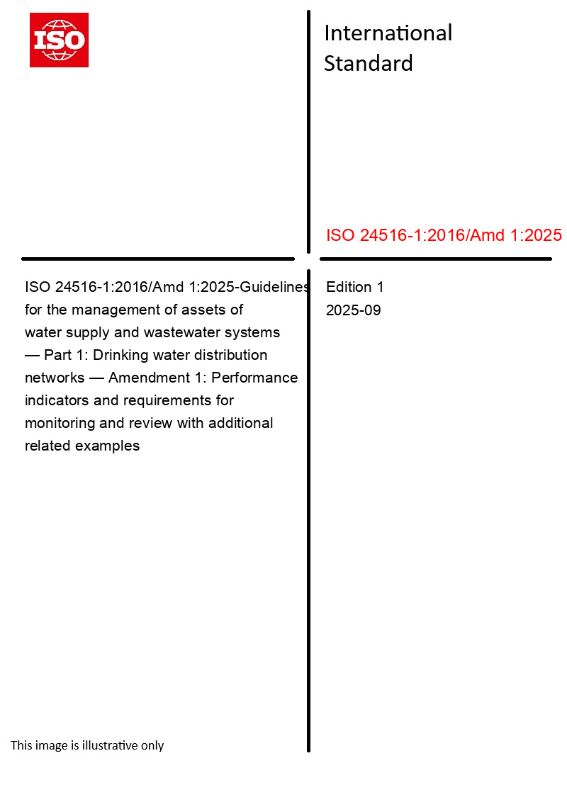>ISO Standards>ISO 24516-1:2016/Amd 1:2025-Guidelines for the management of assets of water supply and wastewater systems — Part 1: Drinking water distribution networks — Amendment 1: Performance indicators and requirements for monitoring and review with additional related examples