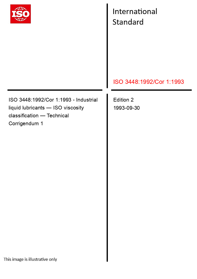 ISO 3448:1992/Cor 1:1993 - Industrial liquid lubricants — ISO viscosity classification — Technical Corrigendum 1