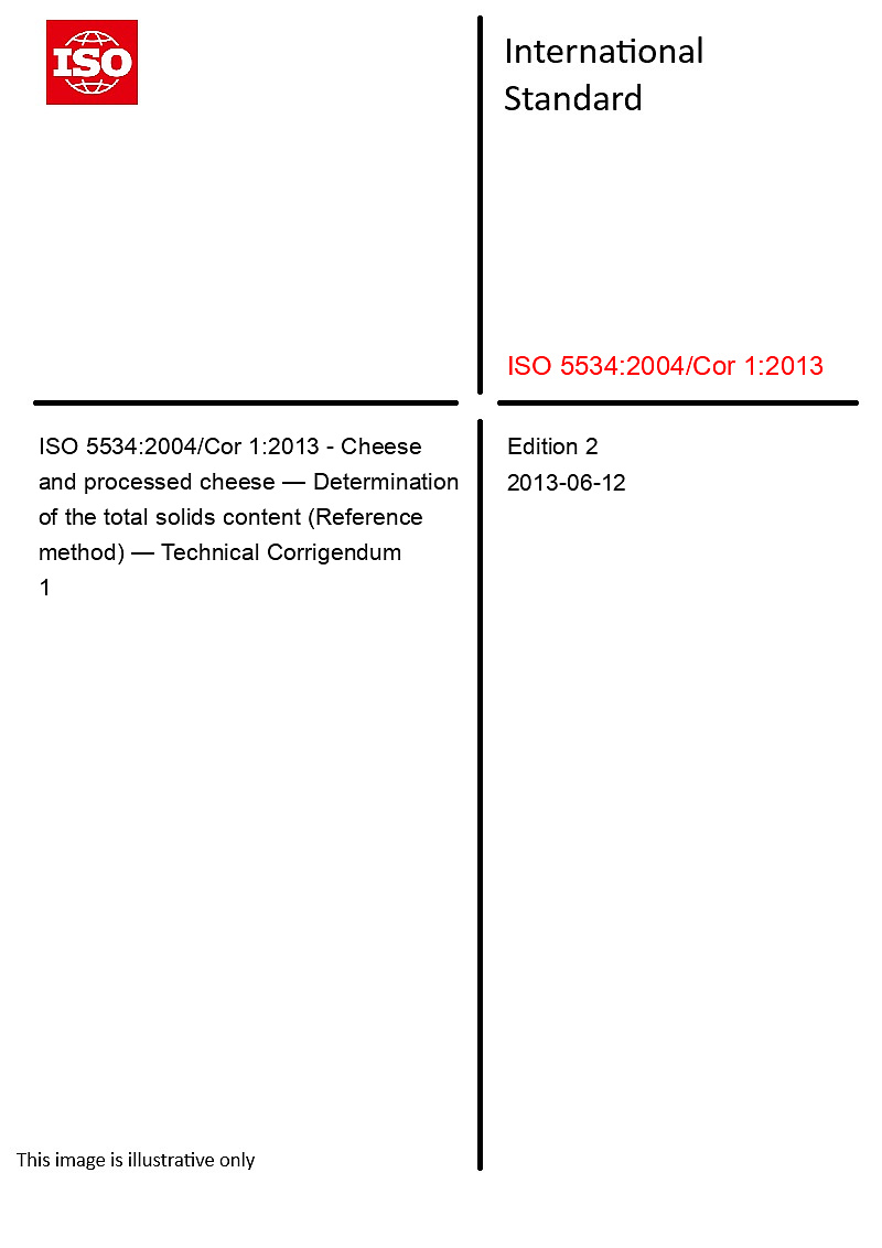 ISO 5534:2004/Cor 1:2013 - Cheese and processed cheese — Determination of the total solids content (Reference method) — Technical Corrigendum 1