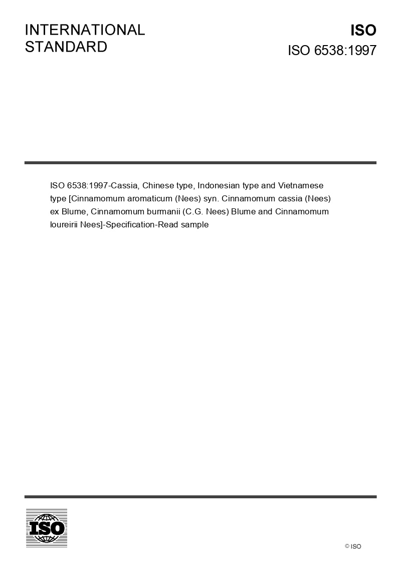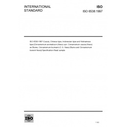 >ISO Standards>ISO 6538:1997-Cassia, Chinese type, Indonesian type and Vietnamese type [Cinnamomum aromaticum (Nees) syn. Cinnamomum cassia (Nees) ex Blume, Cinnamomum burmanii (C.G. Nees) Blume and Cinnamomum loureirii Nees] — Specification