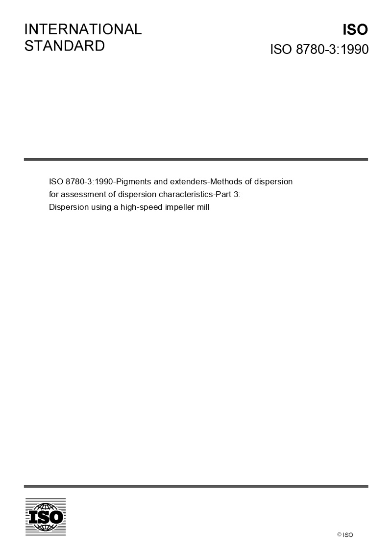 ISO 8780-3:1990-Pigments and extenders — Methods of dispersion for assessment of dispersion characteristics — Part 3: Dispersion using a high-speed impeller mill