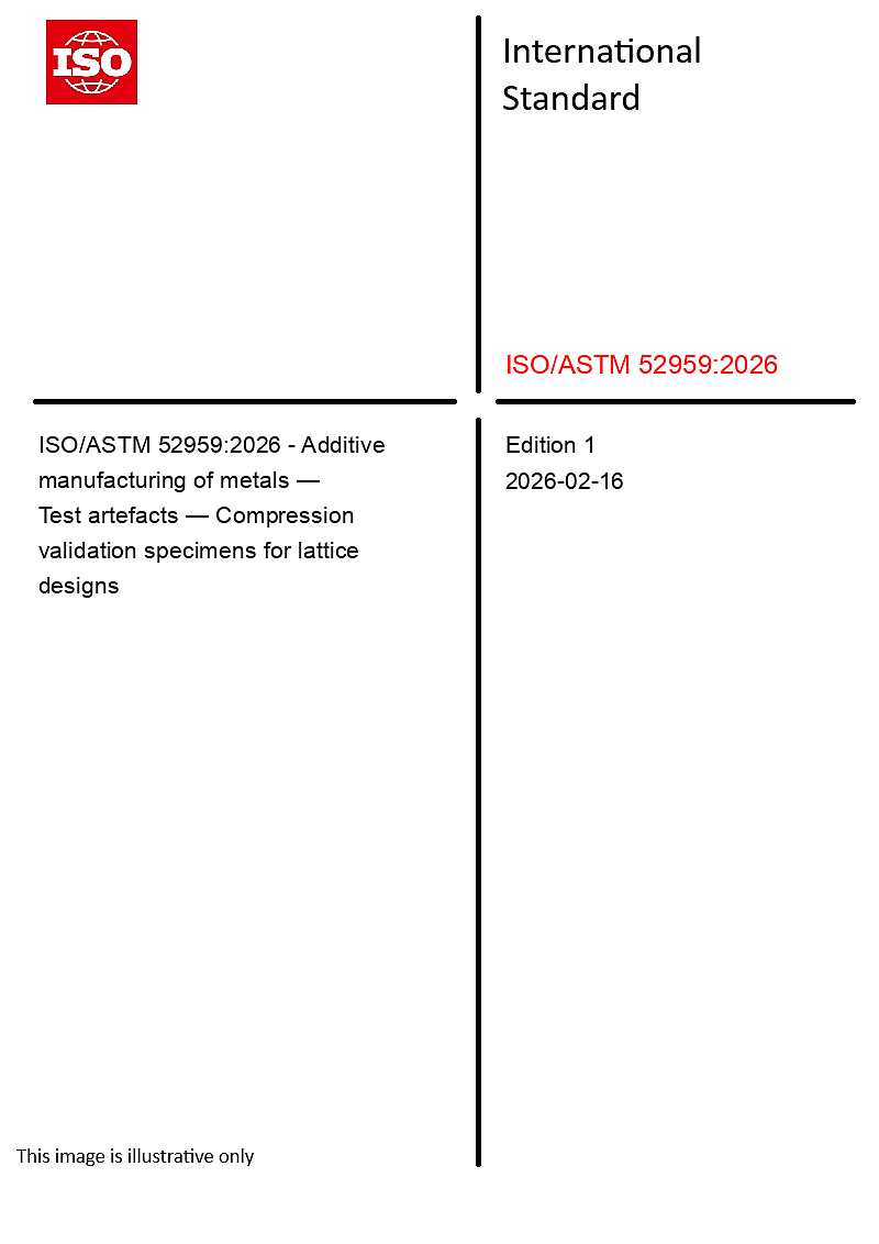 ISO/ASTM 52959:2026 - Additive manufacturing of metals — Test artefacts — Compression validation specimens for lattice designs