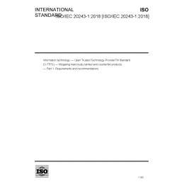 ISO/IEC 20243-1:2018 (O-TTPS) is a set of guidelines, requirements, and recommendations that address specific threats to the integrity of hardware and software COTS ICT products throughout the product life cycle. This release of the Standard addresses threats related to maliciously tainted and counterfeit products. The provider's product life cycle includes the work it does designing and developing products, as well as the supply chain aspects of that life cycle, collectively extending through the following phases: design, sourcing, build, fulfillment, distribution, sustainment, and disposal. While this Standard cannot fully address threats that originate wholly outside any span of control of the provider ? for example, a counterfeiter producing a fake printed circuit board assembly that has no original linkage to the Original Equipment Manufacturer (OEM) ? the practices detailed in the Standard will provide some level of mitigation. An example of such a practice would be the use of security labeling techniques in legitimate products.