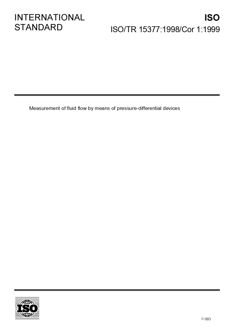 >ISO Standards>ISO/TR 15377:1998/Cor 1:1999-Measurement of fluid flow by means of pressure-differential devices-Guidelines for the specification of nozzles and orifice plates beyond the scope of ISO 5167-1-Technical Corrigendum 1