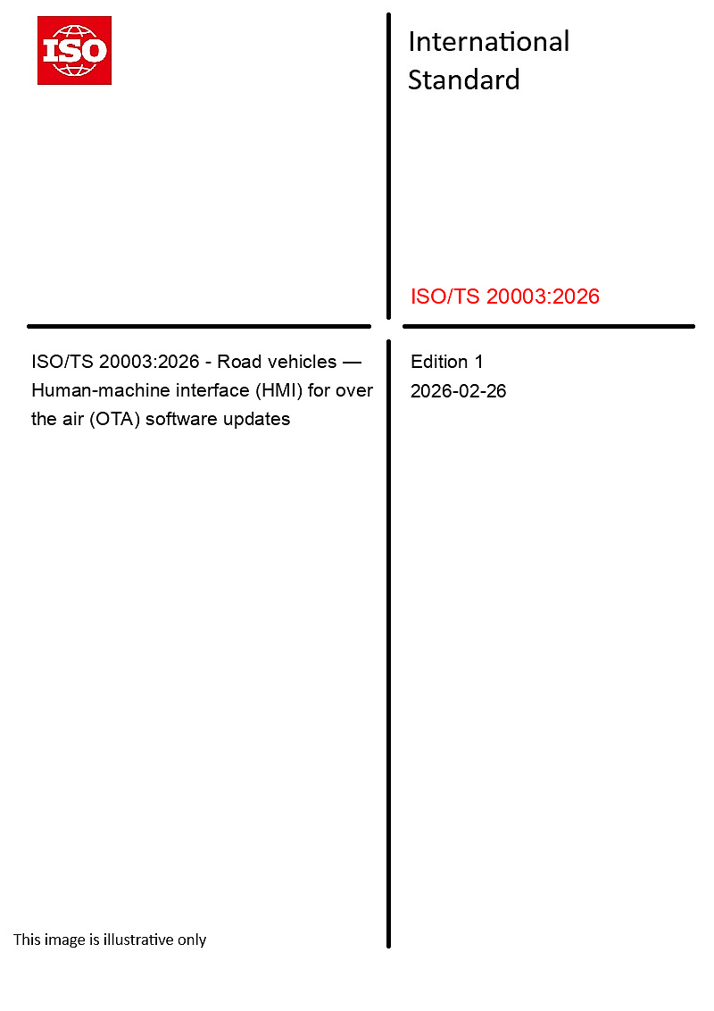 ISO/TS 20003:2026 - Road vehicles — Human-machine interface (HMI) for over the air (OTA) software updates