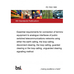 This standard PD 7002:1995 Essential requirements for connection of terminal equipment to analogue interfaces of public switched telecommunications networks using either the earth calling, the loop calling, disconnect clearing, the loop calling, guarded clearing or the loop calling, unguarded clearing signalling method is classified in these ICS categories: