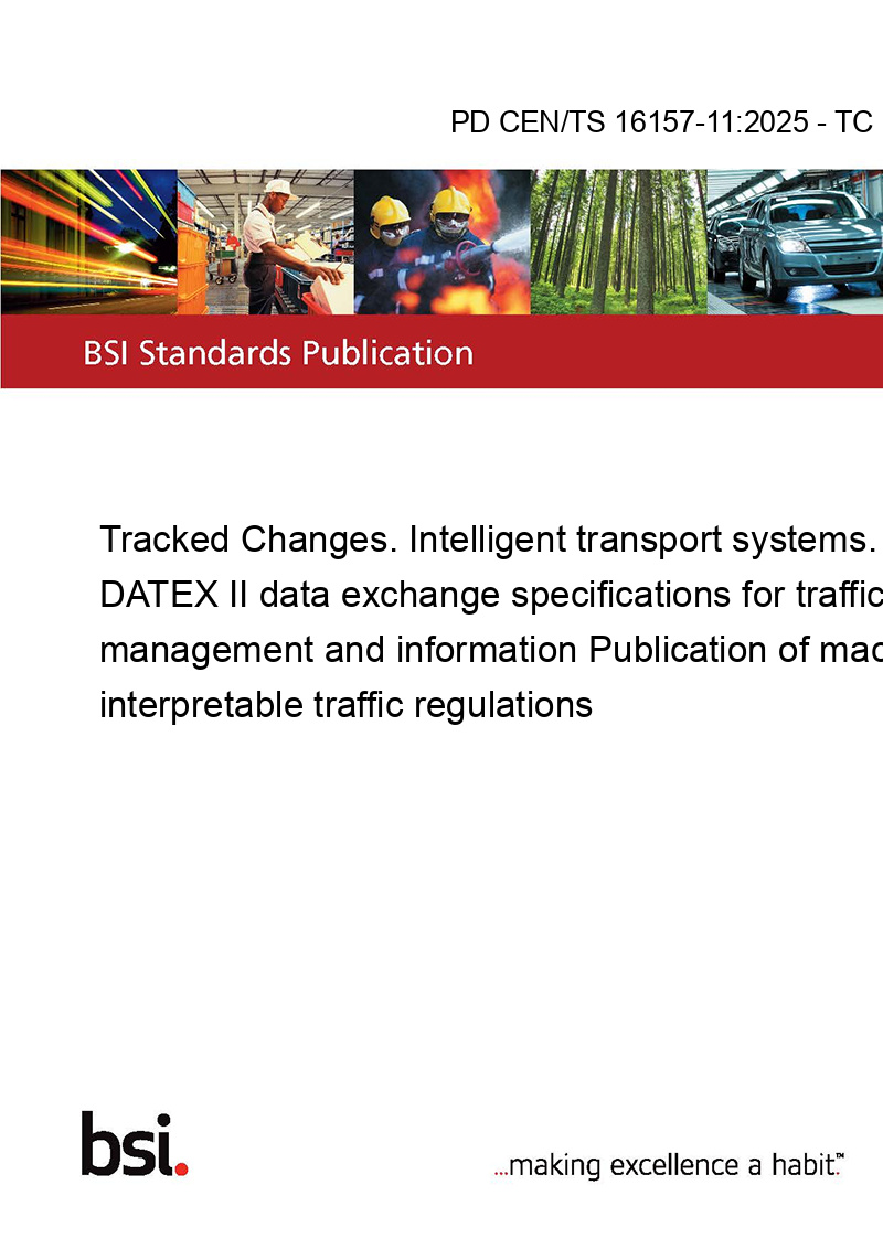 This standard PD CEN/TS 16157-11:2025 - TC Tracked Changes. Intelligent transport systems. DATEX II data exchange specifications for traffic management and information is classified in these ICS categories: