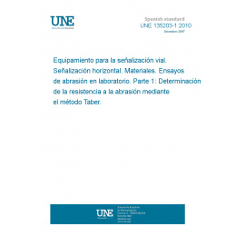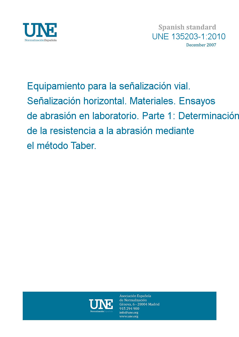 Equipamiento para la señalización vial. Señalización horizontal. Materiales. Ensayos de abrasión en laboratorio. Parte 1: Determinación de la resistencia a la abrasión mediante el método Taber.
