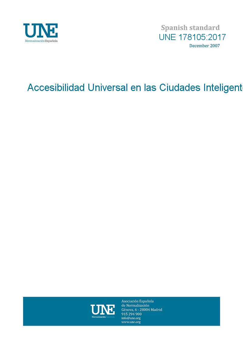 UNE 178105:2017 Universal Accessibility in the Smart Cities.in stockReleased: 2017-06-14