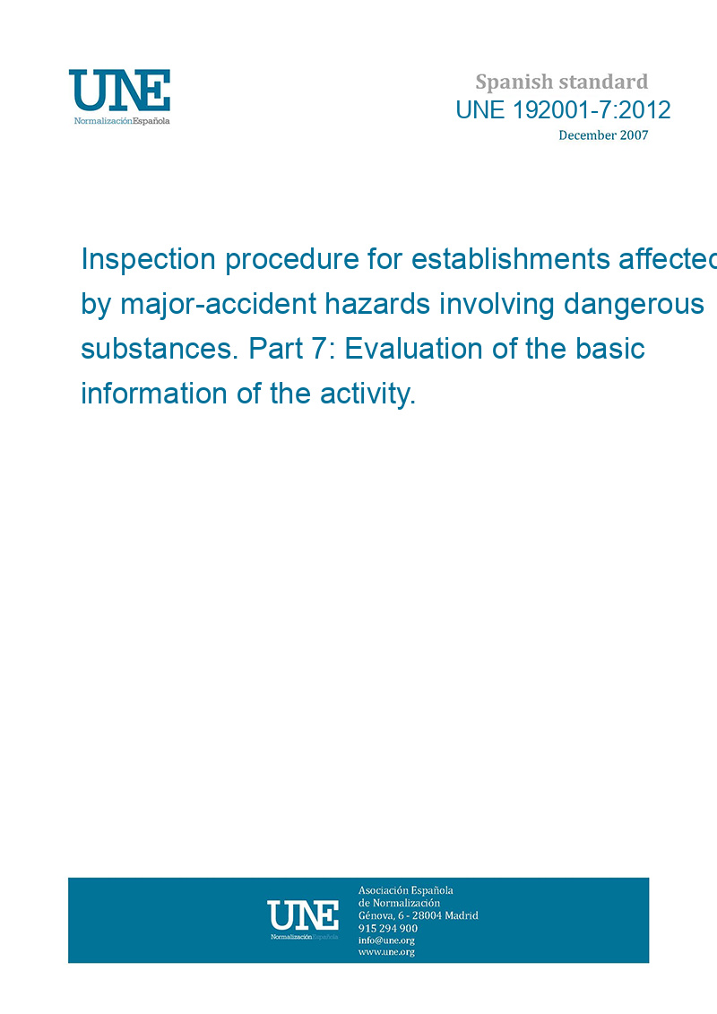 This standard UNE 192001-7:2012 Inspection procedure for establishments affected by major-accident hazards involving dangerous substances. Part 7: Evaluation of the basic information of the activity. is classified in these ICS categories: