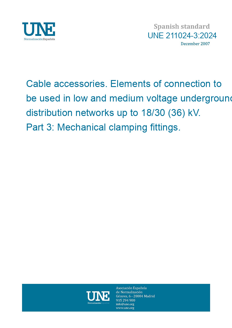 Cable accessories. Elements of connection to be used in low and medium voltage underground distribution networks up to 18/30 (36) kV. Part 3: Mechanical clamping fittings.
