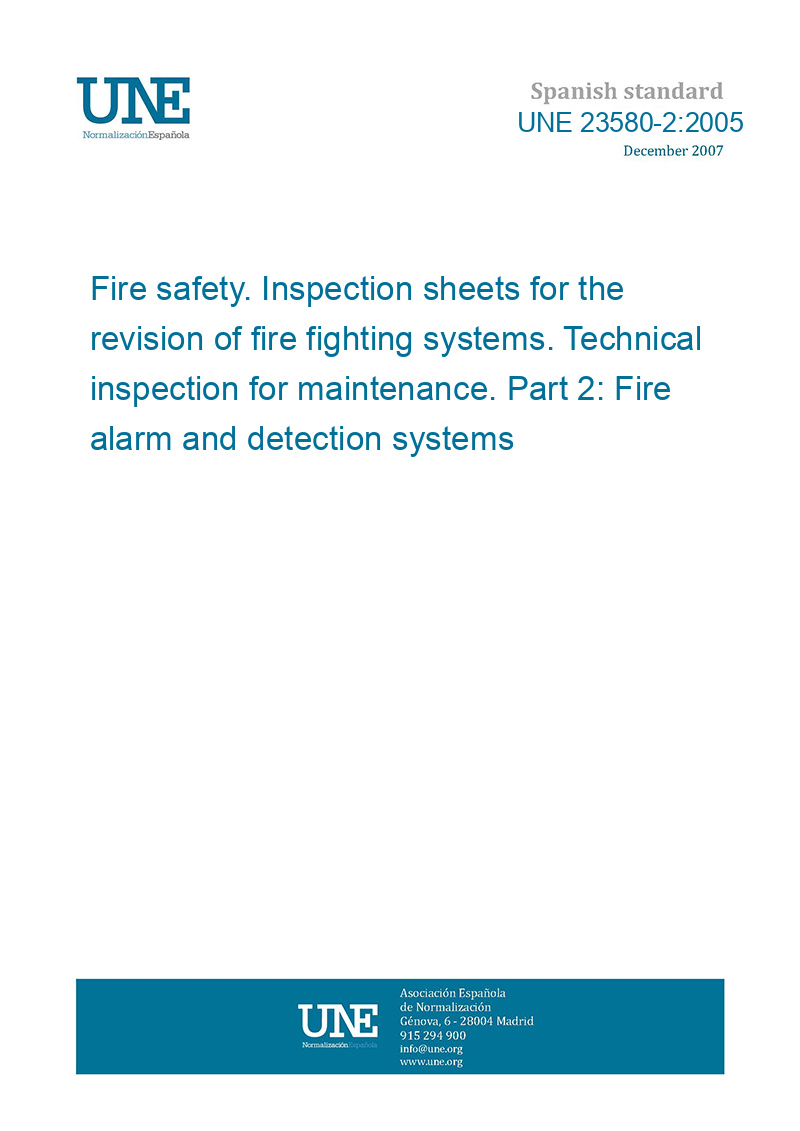 >UNE standards>UNE 23580-2:2005 Fire safety. Inspection sheets for the revision of fire fighting systems. Technical inspection for maintenance. Part 2: Fire alarm and detection systems