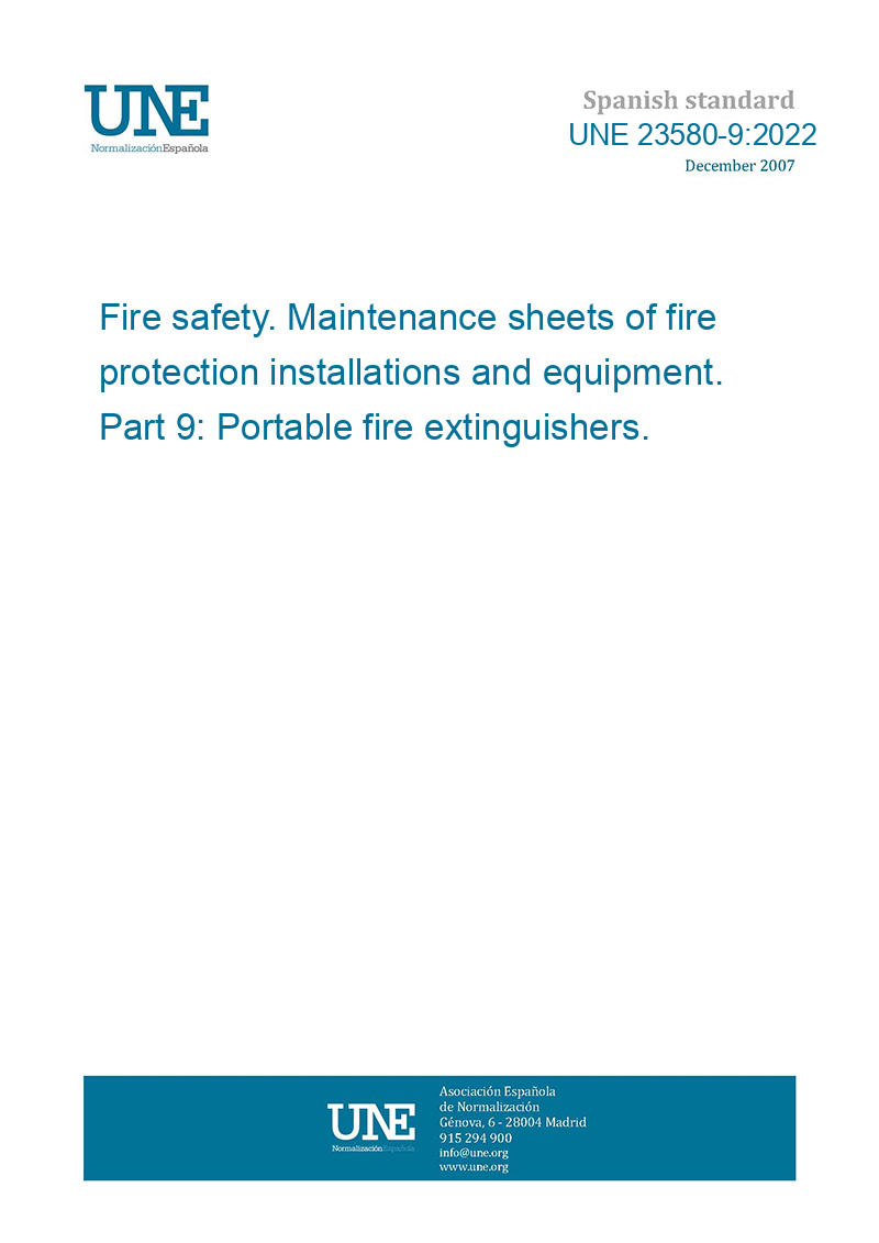 This standard UNE 23580-9:2022 Fire safety. Maintenance sheets of fire protection installations and equipment. Part 9: Portable fire extinguishers. is classified in these ICS categories: