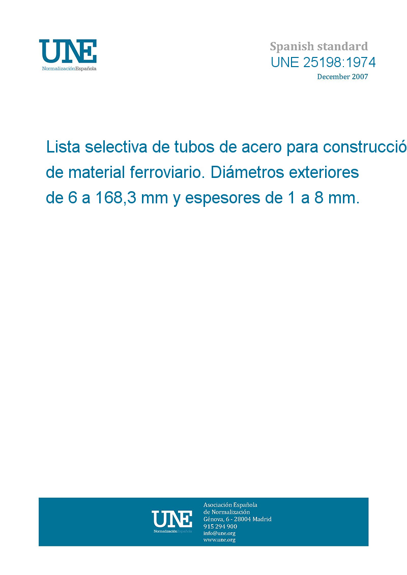 This standard UNE 25198:1974 SELECTIVE LIST OF STEEL TUBES FOR RAILWAY MATERIAL CONSTRUCTION. EXTERNAL DIAMETERS OF 6-168,3 MM AND 1-8 MM THICKNESS. is classified in these ICS categories: