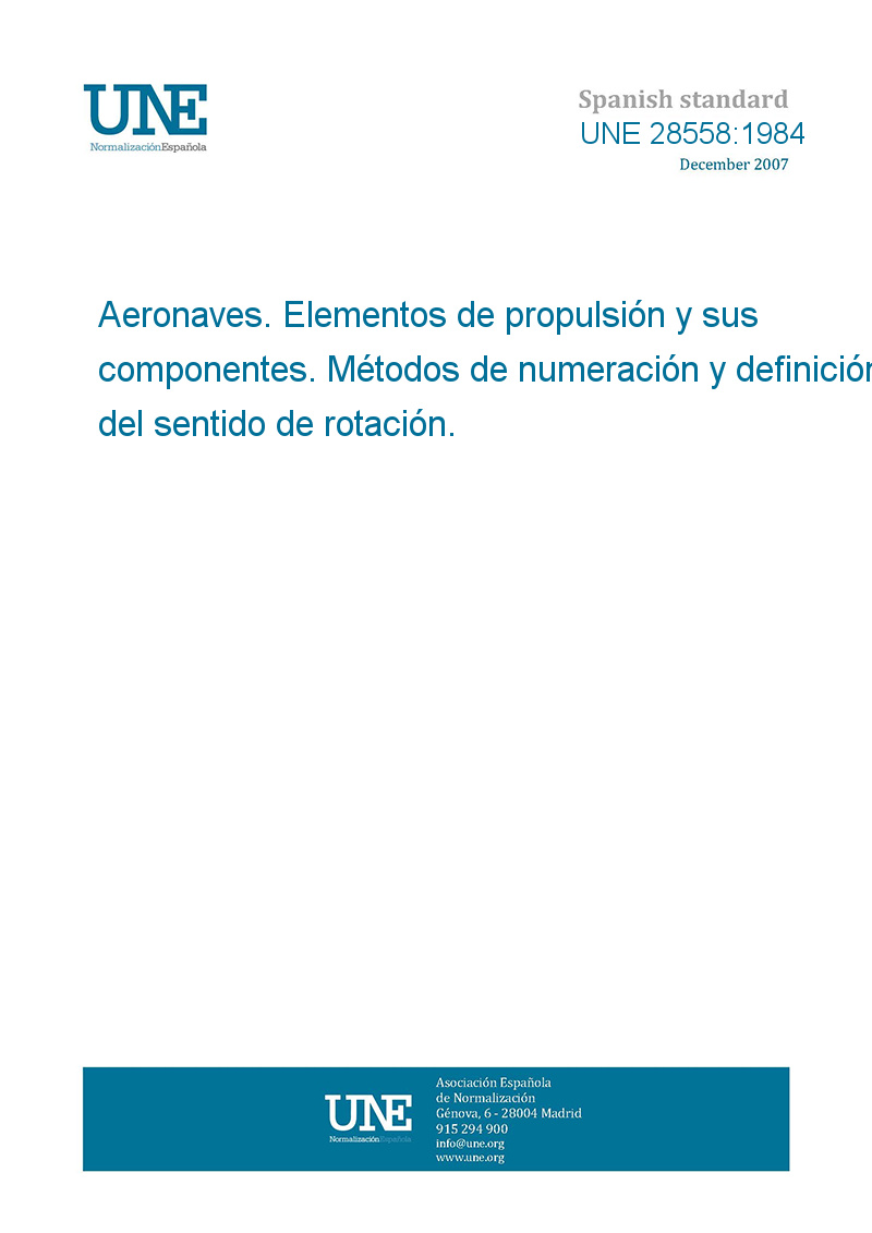 >UNE standards>UNE 28558:1984 Aircraft — Propulsion units and components — Methods of numbering and describing direction of rotation