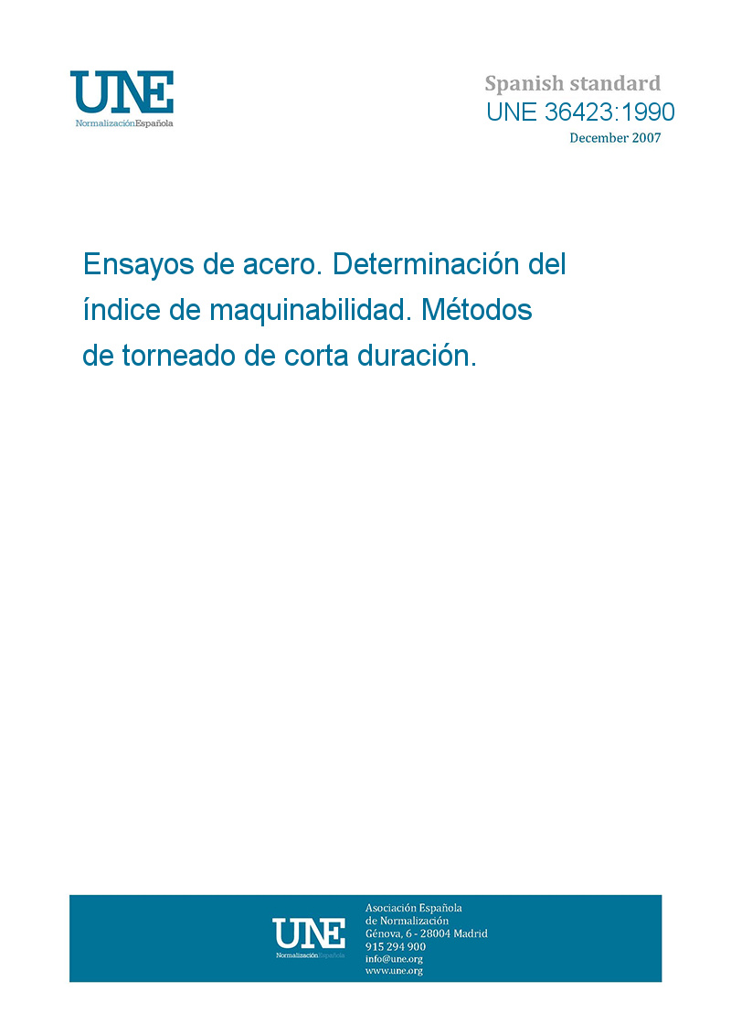 This standard UNE 36423:1990 TESTS ON STEELS. MACHINABILITY INDEX DETERMINATION. TURNING METHODS BY SHORT TIME TOOL-LIFE TESTING is classified in these ICS categories: