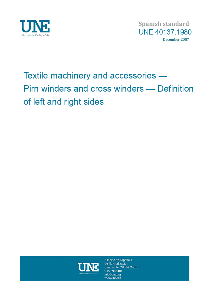 This standard UNE 40137:1980 Textile machinery and accessories — Pirn winders and cross winders — Definition of left and right sides is classified in these ICS categories: