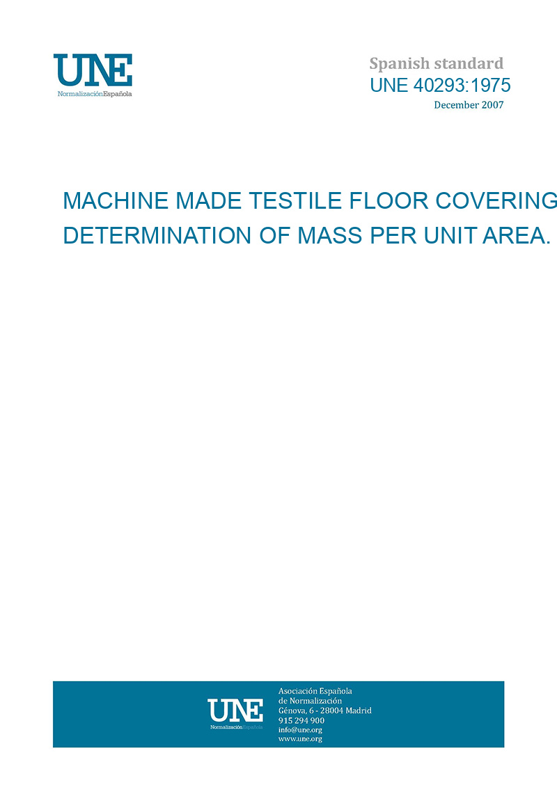 UNE 40293:1975 MACHINE MADE TESTILE FLOOR COVERINGS. DETERMINATION OF MASS PER UNIT AREA.Not available online - contact us!