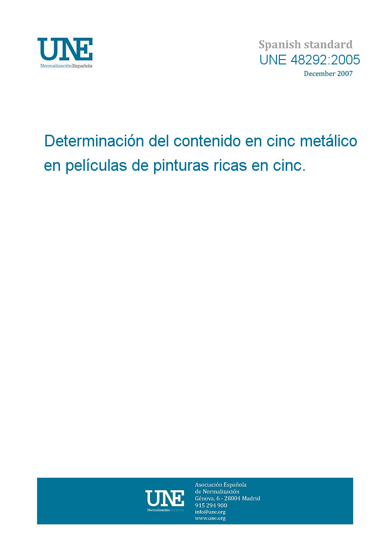 UNE 48292:2005 Metallic zinc content in zinc rich paints.Not available online - contact us!