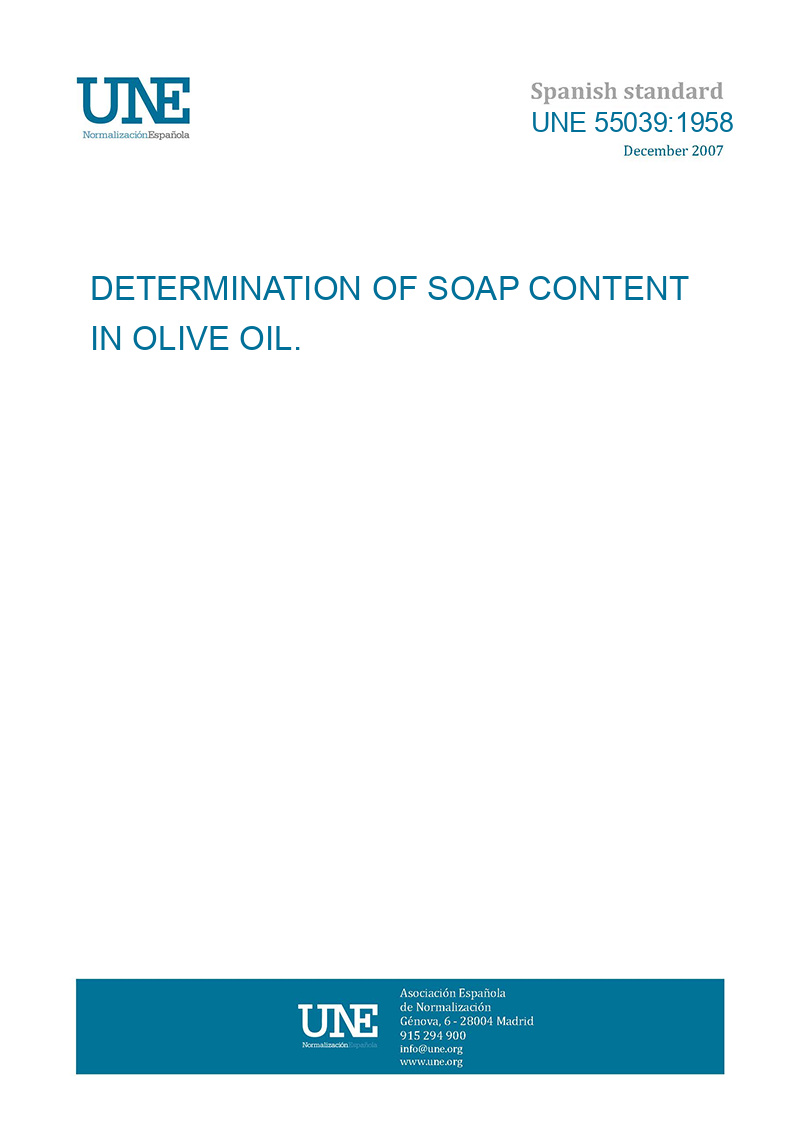 UNE 55039:1958 DETERMINATION OF SOAP CONTENT IN OLIVE OIL.in stockReleased: 1958-05-15