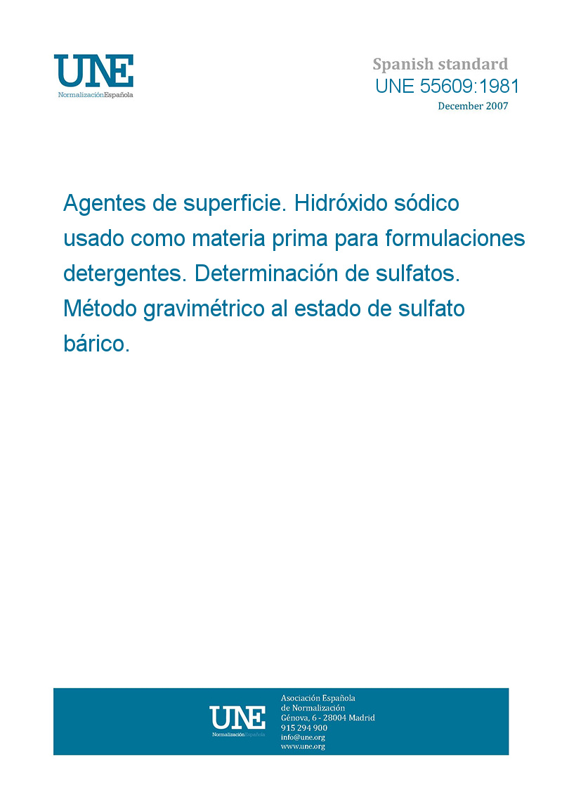 Agentes de superficie. Hidróxido sódico usado como materia prima para formulaciones detergentes. Determinación de sulfatos. Método gravimétrico al estado de sulfato bárico.