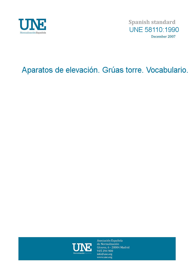 UNE 58110:1990 LIFTING APPLIANCES. VOCABULARY. TOWER CRANES.in stockReleased: 1990-09-18