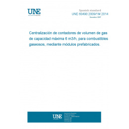 This standard UNE 60490:2009/1M:2014 Centralized installation of gas meters up to 6 m3/h of maximum capacity with prefabricated assemblies. is classified in these ICS categories: