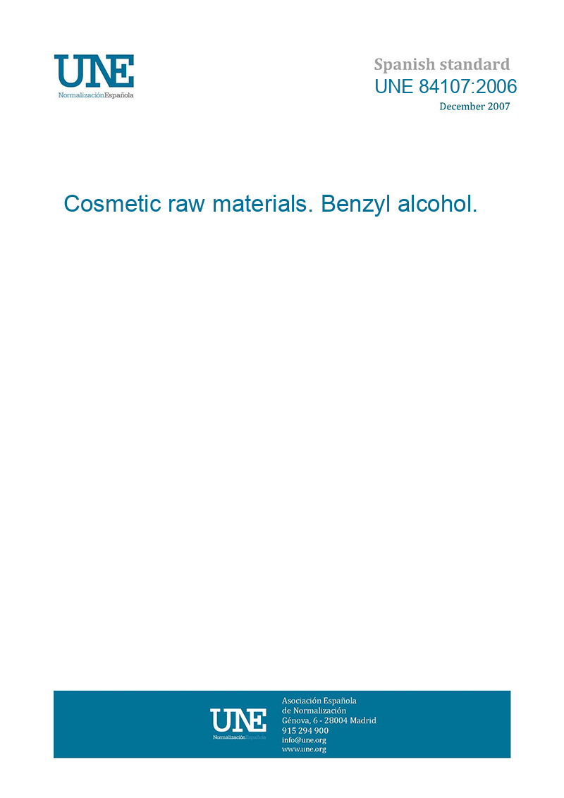UNE 84107:2006 Cosmetic raw materials. Benzyl alcohol.in stockReleased: 2006-05-24