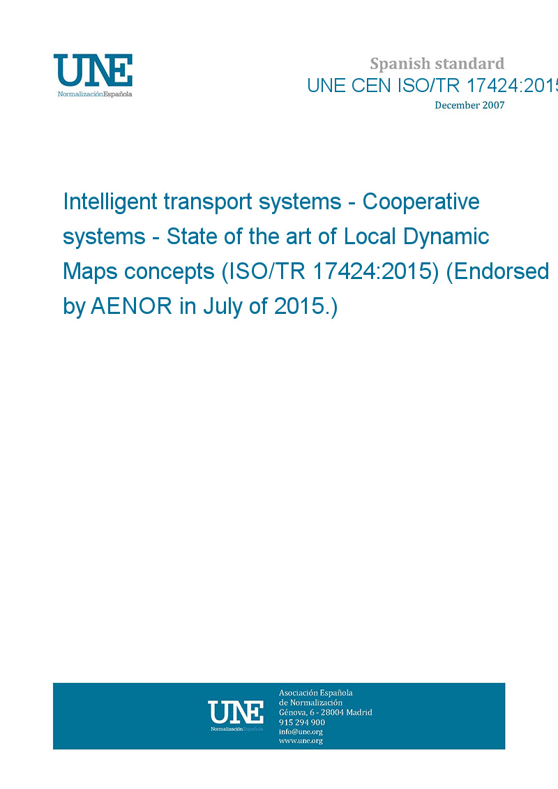 Intelligent transport systems - Cooperative systems - State of the art of Local Dynamic Maps concepts (ISO/TR 17424:2015) (Endorsed by AENOR in July of 2015.)