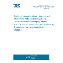 Intelligent transport systems - Management of electronic traffic regulations (METR) - Part 2: Operational concepts (ConOps) (ISO/TR 24315-2:2025) (Endorsed by Asociación Española de Normalización in November of 2025.)