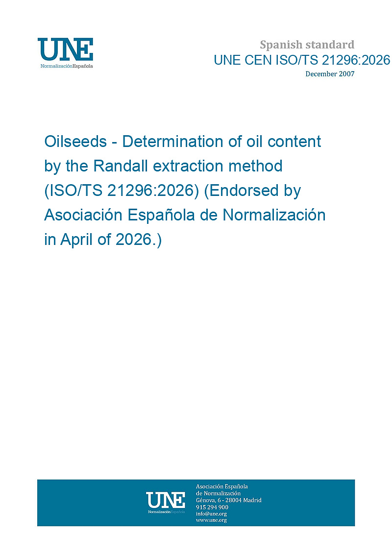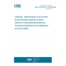 Semillas oleaginosas. Determinación del contenido de aceite mediante el método de extracción Randall (ISO/TS 21296:2026) (Ratificada por la Asociación Española de Normalización en abril de 2026.)