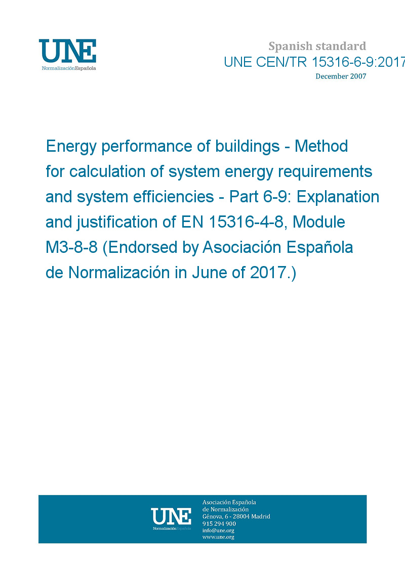 Energy performance of buildings - Method for calculation of system energy requirements and system efficiencies - Part 6-9: Explanation and justification of EN 15316-4-8, Module M3-8-8 (Endorsed by Asociación Española de Normalización in June of 2017.)
