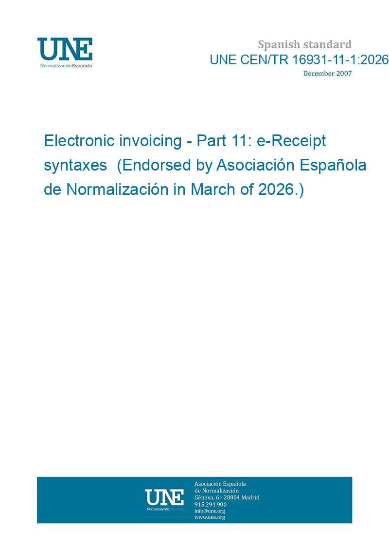 Electronic invoicing - Part 11: e-Receipt syntaxes (Endorsed by Asociación Española de Normalización in March of 2026.)