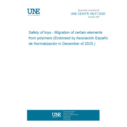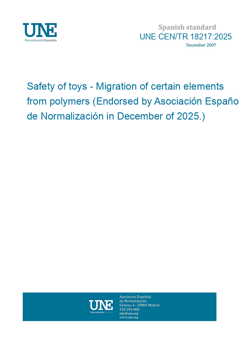 This standard UNE CEN/TR 18217:2025 Safety of toys - Migration of certain elements from polymers (Endorsed by Asociación Española de Normalización in December of 2025.) is classified in these ICS categories: