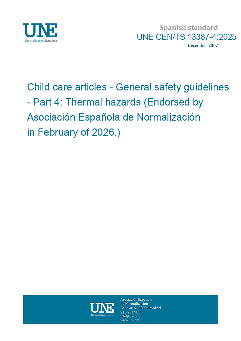 Artículos de puericultura. Directrices generales de seguridad. Parte 4: Peligros térmicos. (Ratificada por la Asociación Española de Normalización en febrero de 2026.)