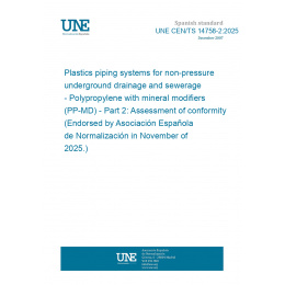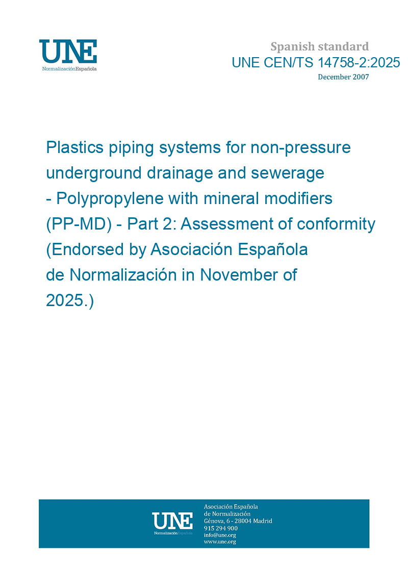 Sistemas de canalización en materiales plásticos para saneamiento y alcantarillado enterrado sin presión. Polipropileno con modificadores minerales (PP-MD). Parte 2: Guía para la evaluación de la conformidad. (Ratificada por la Asociación Española de Normalización en noviembre de 2025.)