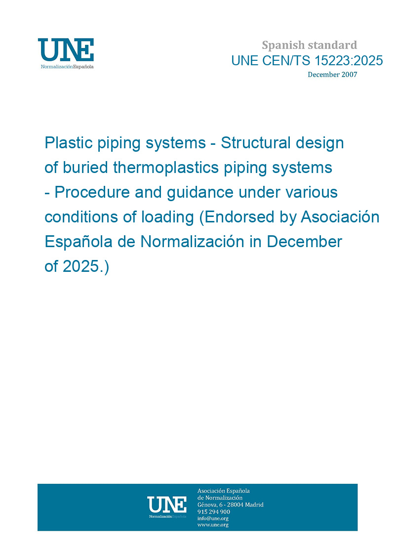 This standard UNE CEN/TS 15223:2025 Plastic piping systems - Structural design of buried thermoplastics piping systems - Procedure and guidance under various conditions of loading (Endorsed by Asociación Española de Normalización in December of 2025.) is classified in these ICS categories: