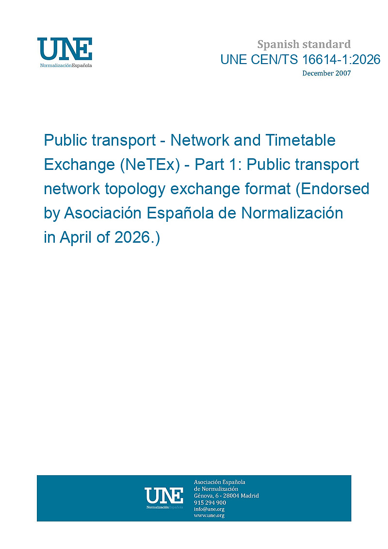 Transporte público. Intercambio de información de red y horarios (NeTEx). Parte 1: Formato de intercambio de la topología de red (Ratificada por la Asociación Española de Normalización en abril de 2026.)
