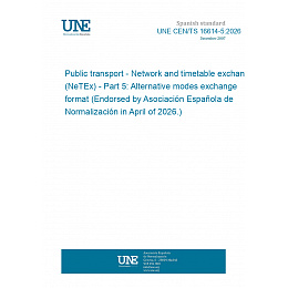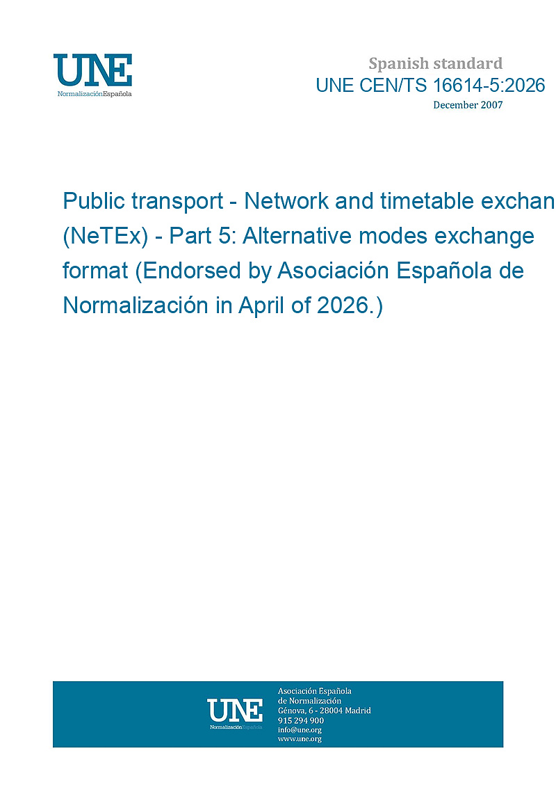 Transporte público. Intercambio de información de red y horarios (NeTEx). Parte 5: Formato de intercambio de modos alternativos (Ratificada por la Asociación Española de Normalización en abril de 2026.)