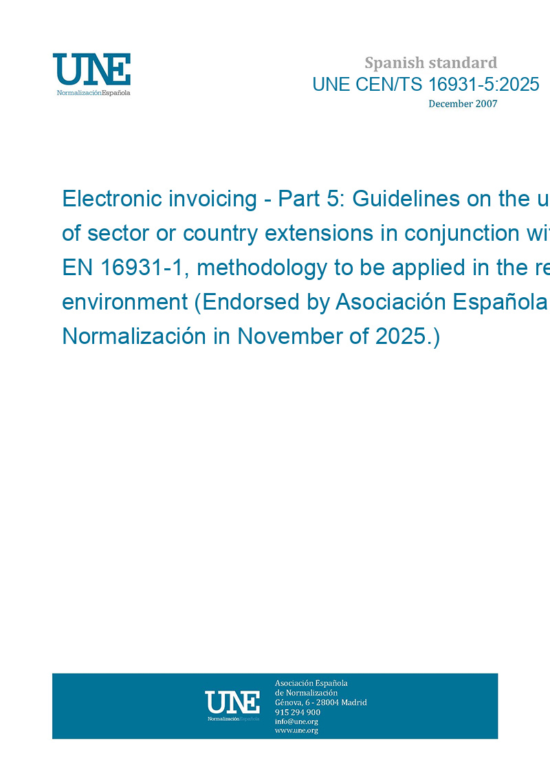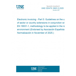 Electronic invoicing - Part 5: Guidelines on the use of sector or country extensions in conjunction with EN 16931-1, methodology to be applied in the real environment (Endorsed by Asociación Española de Normalización in November of 2025.)