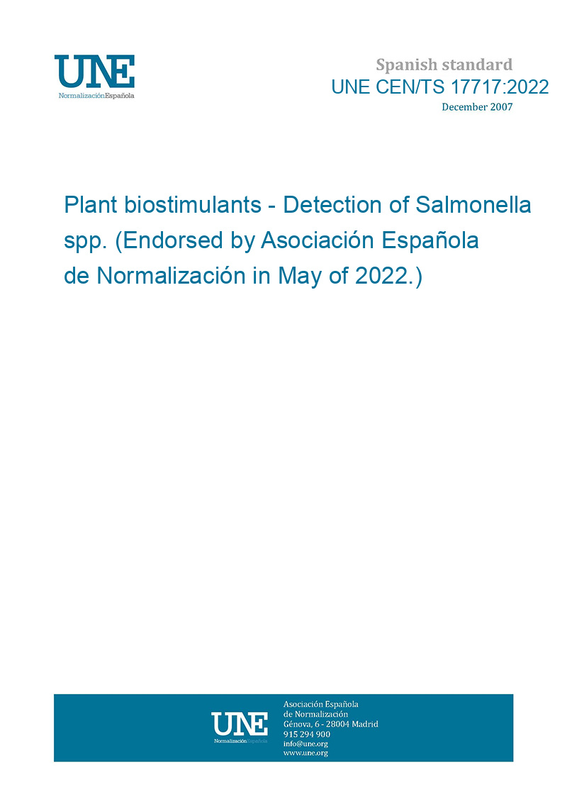 >UNE standards>UNE CEN/TS 17717:2022 Plant biostimulants - Detection of Salmonella spp. (Endorsed by Asociación Española de Normalización in May of 2022.)