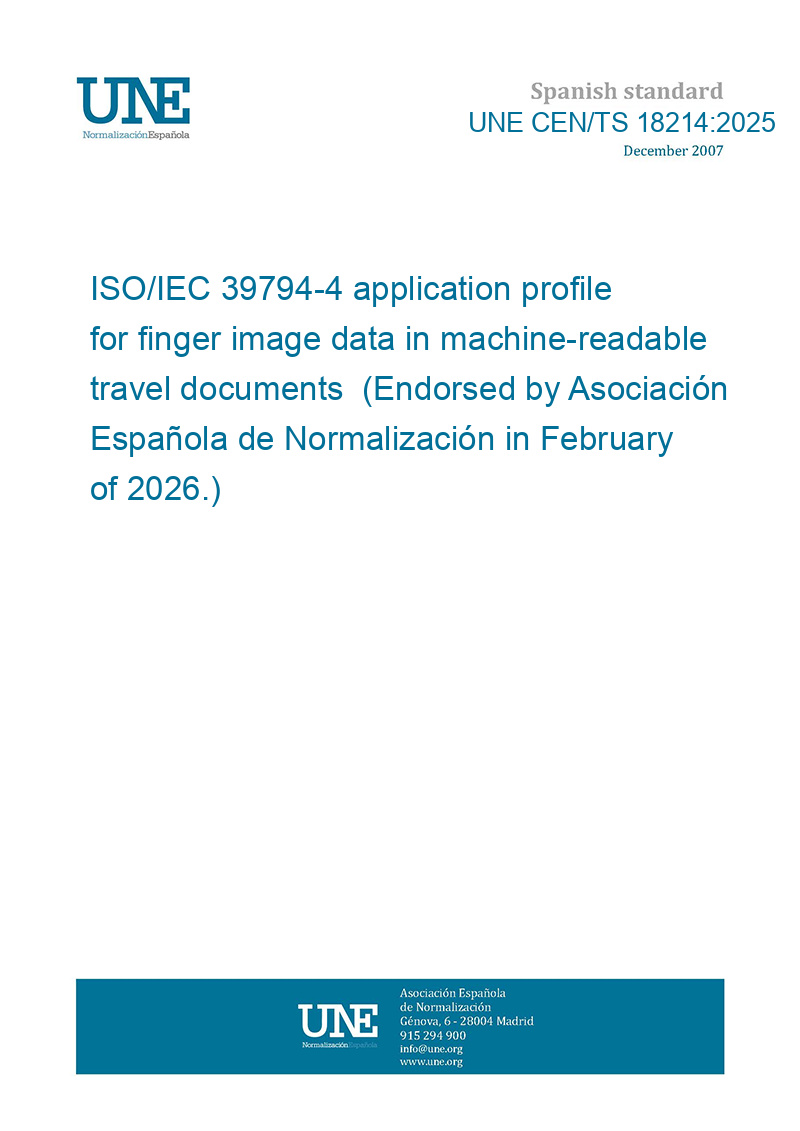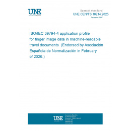 ISO/IEC 39794-4 application profile for finger image data in machine-readable travel documents (Endorsed by Asociación Española de Normalización in February of 2026.)